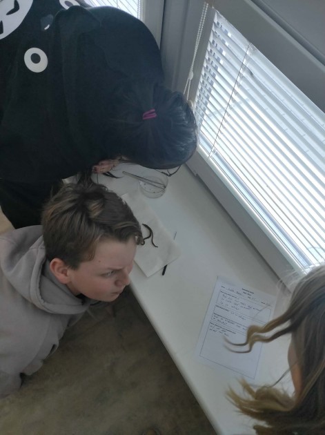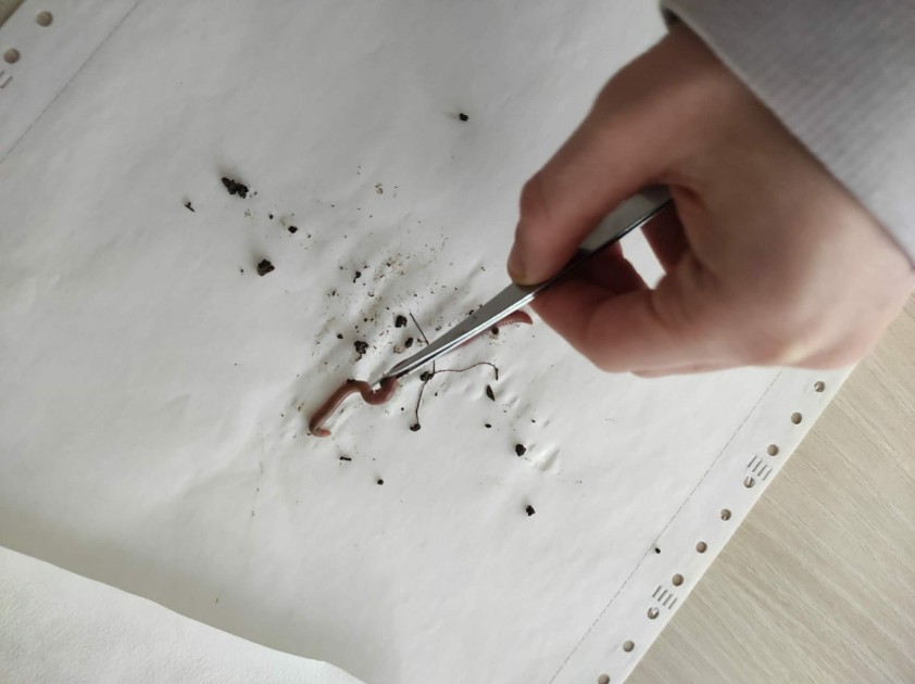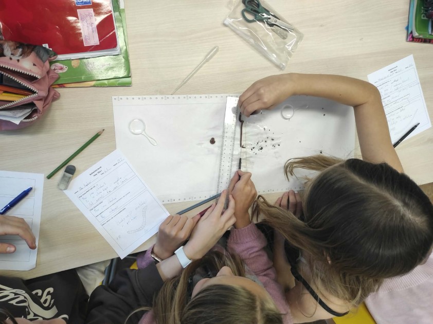 V malých skupinkách žáci žížaly pozorovali pouhým okem, pod lupou i mikroskopem. Měřili jejich délku, sledovali článkování těla a zkoumali způsob pohybu. Zaměřili se také na to, jak reagují na různé podněty – například na světlo, dotek nebo vlhkost, a dokonce jsme je i poslouchali.
