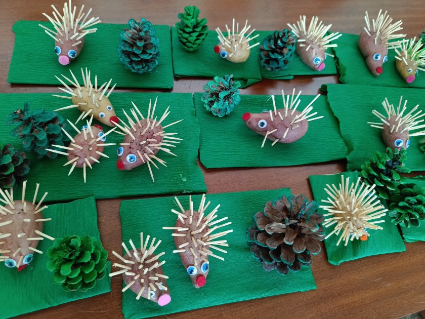 Víte, že ježek má 6000 bodlin a může s nimi libovolně hýbat? Že ježci špatně vidí, ale mají výborný čich? Že za noc zvládnou ujít i víc než 1 km? Že během zimního spánku jim srdce tluče jen 5krát za minutu? A dozvěděli jsme se mnohem víc o ježčím životě. Děti si vyrobily společný plakát nebo i vlastního bodlináče z brambory. A teď ještě vyrazit do přírody a hledat živého ježka, než ulehne k zimnímu spánku.