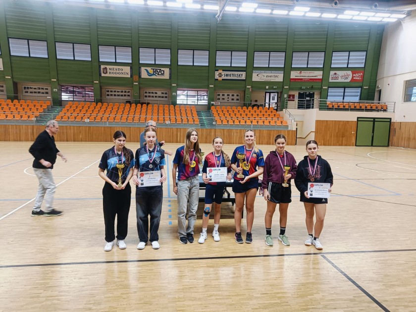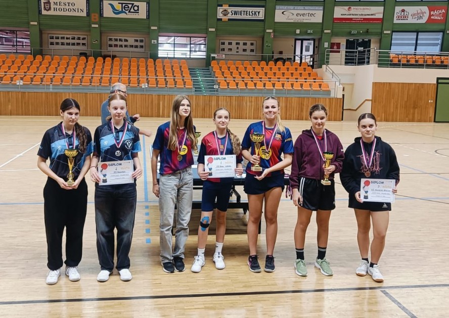 Na okresním kole prošli žáci hladce všemi zápasy v poměru 3:0 a podobně chtěli navázat i v pátek 14.11. v Hodoníně. Celkem pět nejlepších škol v celém kraji se utkalo v kategorii dívek IV (starší žákyně) ve stolním tenise v Teza Hodonín o prvenství. Proti naší škole se postavila ZŠ Veverská Bítýška, ZŠ Očovská Hodonín, ZŠ Rousínov a ZŠ Břeclav. Postupně se všechny týmy utkaly systém každý s každým, ze kterého vzešel vítěz. Úvodní utkání nám přisoudil nejlehčího soupeře a hladce 3:0 jsme porazili ZŠ Veverská Bítýška. V zápětí jsme si 3:1 poradili s domácí školou a rázem z toho bylo nejhůře 3. místo. Po pauze následoval souboj o celkové prvenství, jak se později ukázalo. ZŠ Rousínov sice kladla odpor, ale naše žačky opět zvítězily v poměru 3:0. Poslední krok bývá nejtěžší a zdálo se, že tomu ve dvouhře i čtyřhře bylo tak. Nicméně kvalita a vítězná mentalita byla po celou dobu na naší straně a opět 3:0 jsme dokončili poslední utkání vítězně.