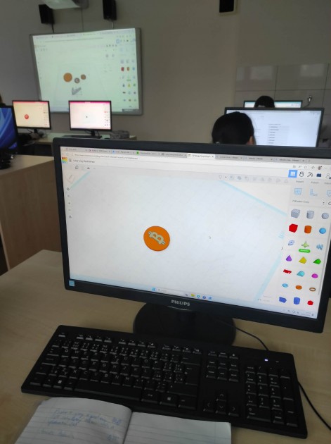 Ve druhé hodině jsme se posunuli o krok dál a otevřeli jsme nástroj Tinkercad, který nabízí širší možnosti práce. Tentokrát už šlo o větší přesnost a technické myšlení. Zaměřili jsme se na přesné zadávání rozměrů, navrstvování objektů, jejich zarovnání a také na seskupování jednotlivých částí do jednoho funkčního celku.