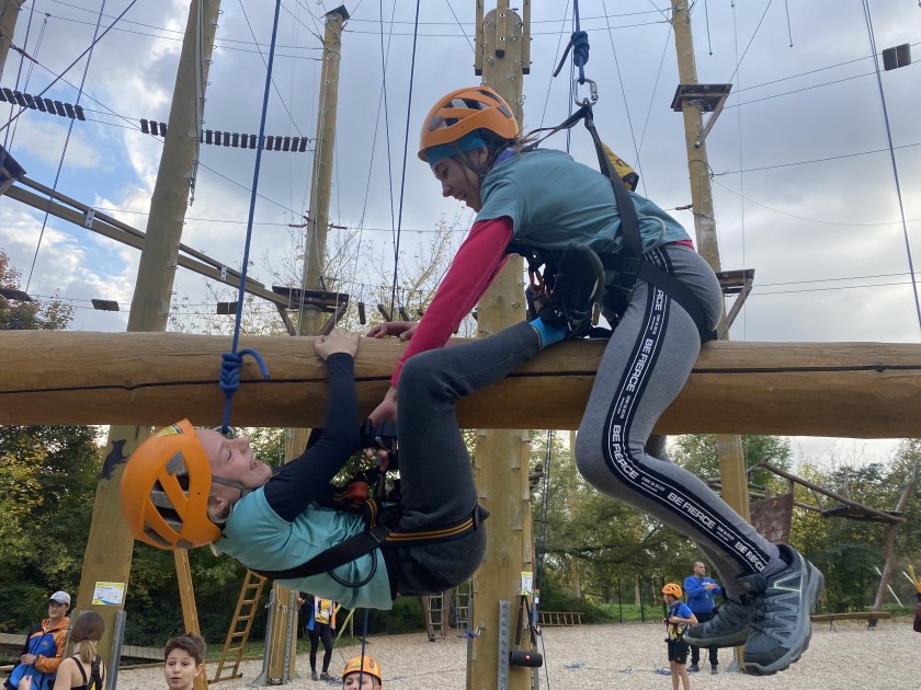 V odpoledních hodinách nastal zlatý hřeb dne, na který se děti těšily už od rána. Vzhůru do oblak! Lana, různé tyče a plošinky ve dvanáctimetrové výšce? Pro naše žáky žádný problém.
