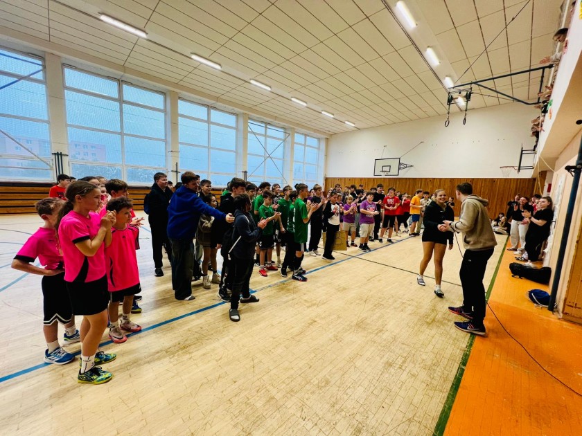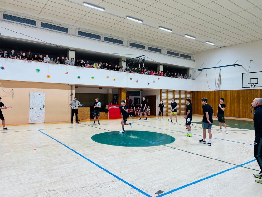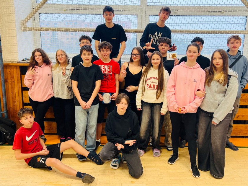 Ve středu pokračoval soutěž tříd ve vybíjené. Tentokrát týmová soutěž zavítala na druhý stupeň, kde se třídy utkaly ve dvou věkových kategoriích - mladší (6.-7.) a starší (8.-9.) žáci. Harmonogram akce byl vytvořený tak, aby žáci dokázali podat maximální výkon v omezeném čase a aby bavil všechny ty, kteří nehráli a fandili. Celý den bylo k vidění mnoho skvělých akcí, obranných úhybů i chytrých tahů. Celkově se odehrálo 23 utkání a všechny opravdu bavily. Finále mladší skupiny určil po základních skupinách pavouk, kde vítězem semifinále 1 byla 6.A a vítězem semifinále 2 třída 7.A. Vzájemný zápas pak ukázal sílu starších a zkušenějších žáků, kteří si zajistili skórem 10:2 titul. O 3. místo byl taktéž velký boj, ale opět starší třída zvítězila. 7.C si výsledkem 10:2 zajistila bronzovou pozici. Hráčem mladší kategorie se stal Dominik Král ze 7.A a hráčkou byla zvolená Leontýna Jančíková z 6.A.