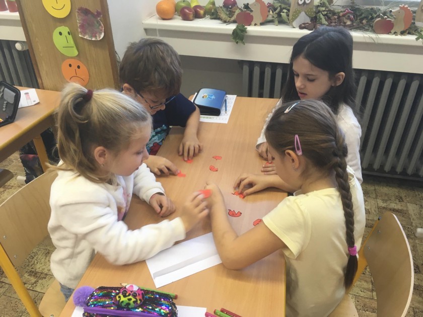 V úterý 22. 10. celé dopoledne patřilo jablíčkám. V průběhu ,,Jablíčkového dne“ si žáci 1. C udělali výstavku různých druhů tohoto ovoce. Seznámili se s historií, povídali si o svém jablíčku v komunitním kruhu a učili se naslouchat spolužáky. Zahráli si pantomimu, jak sadař trhá jablka ze stromu a zazpívali různé písničky. Nechyběla ani krátká pohádka O jabloňce od Eduarda Petišky. Na mazací tabulku si vyzkoušeli jednotažku – jablko. Ve skupinách skládali jablíčkové puzzle, ve kterém byla ukryta slabika a společně si slabiky přečetli. Ve dvojicích určovali počet slabik ve slově, hlasitě četli slova v jablíčku, které si každý utrhl z jabloně. Procvičili si opis písmen, kreslili obrázek podle pokynů paní učitelky, vybarvovali jablíčka podle počtu a podle logické řady. Dále žáci hledali odlišné obrázky, zahráli si stínové domino, vytvořili šaty pro jablíčkovou vílu, pojmenovávali věci potřebné u sklizně, způsoby uchování potravin. A na co se žáci nejvíce těšili? Na ochutnávku jablkového kompotu, nepečeného dortu, moštu a dalších dobrot. Poděkování patří maminkám, které dětem upekly výborný jablkový závin a podpořily netradiční výuku.