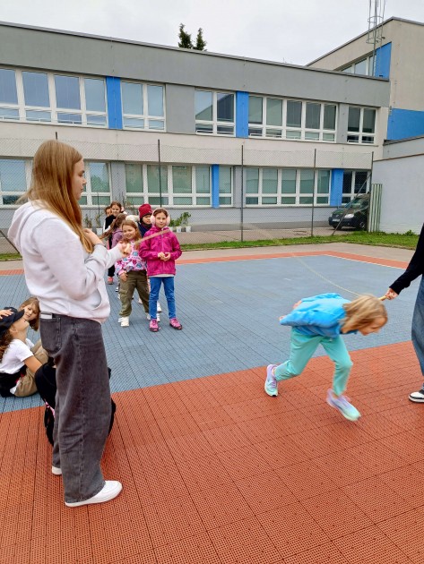 Podzimní dny 5.oddělení školní družiny využilo pěkné počasí k míčovým hrám, skákání přes švihadlo, soutěžení v týmech a zkoumání dětských hřišť v okolí školy. Ven chodíme rádi!