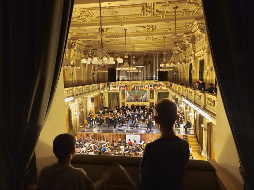 Zážitek umocnilo nejen slavnostní prostředí významné historické brněnské budovy, ale i výjimečná místa na balkoně, odkud si děti mohly z opravdu jedinečné perspektivy tento koncert ještě lépe vychutnat.