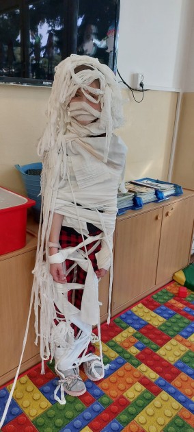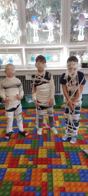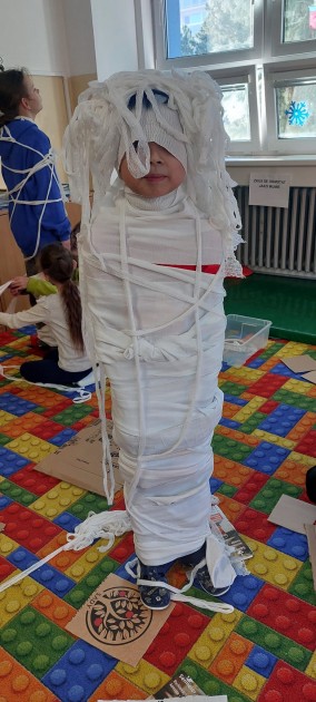 A pak nastal očekávaný den, kdy se děti pustily do plnění úkolů, soutěží a tvoření. V Egyptě si užily legraci u omotávání mumií a při stavbě pyramid.