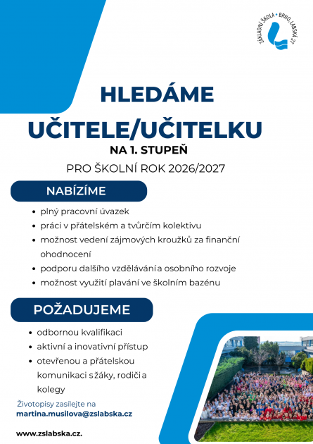 Hledáme nového kolegu/kolegyni na 1. stupeň