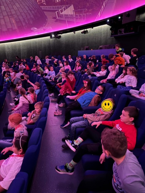 V pondělí 13. října 2025 se žáci prvních tříd vydali na exkurzi do Hvězdárny a planetária Brno. Čekala je cesta až do srdce vesmíru – vydali se na ni prostřednictvím animované pohádky Se zvířátky o vesmíru.